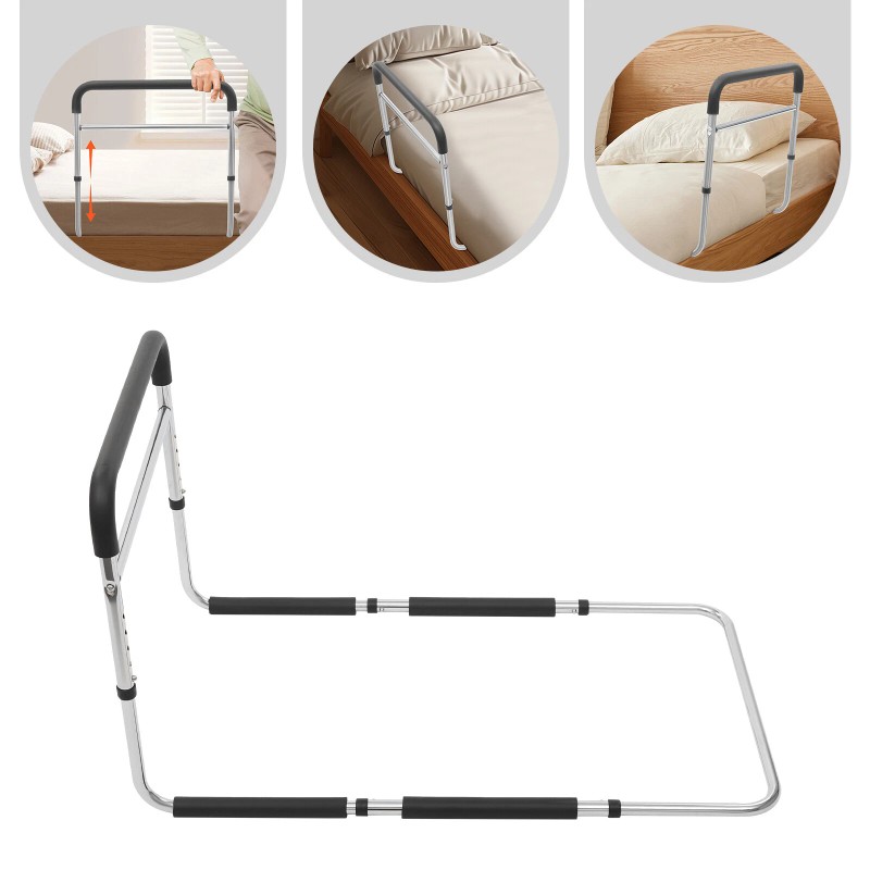 This product is a bed safety rail designed specifically to improve bedside safety and convenience. The extended installation base ensures a stable installation. The armrest height can be adjusted to meet the needs of different users. High-density sponge provides a comfortable grip and anti-slip effect. This product is particularly suitable for elderly and rehabilitation users and is an ideal choice for improving their quality of life.
