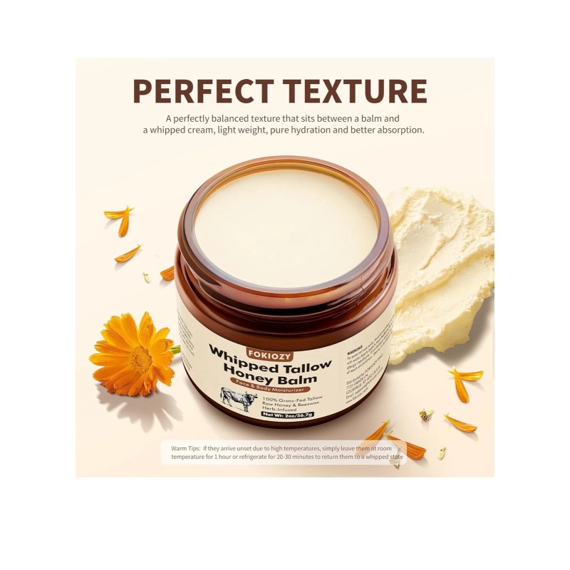 Unbranded Beef Tallow for Skin - Organic Grass-Fed Whipped Beef Tallow and Honey Balm