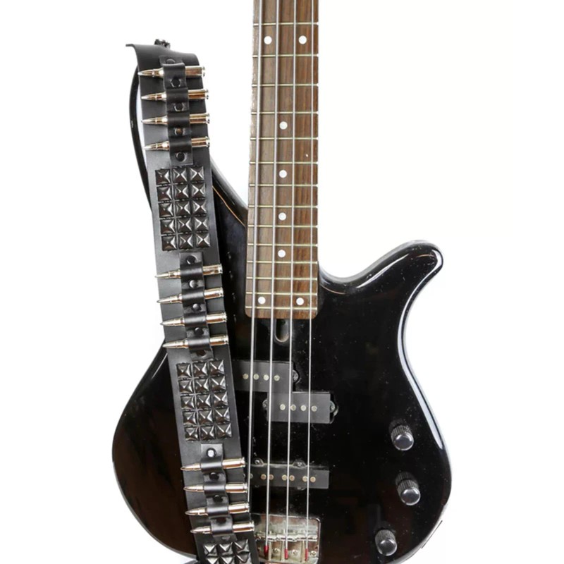 Unbranded Black Leather 3 Row Pyramid Stud & Bullet Guitar Strap Punk Rock Goth Metal Bass - BS-Bullet Nickel