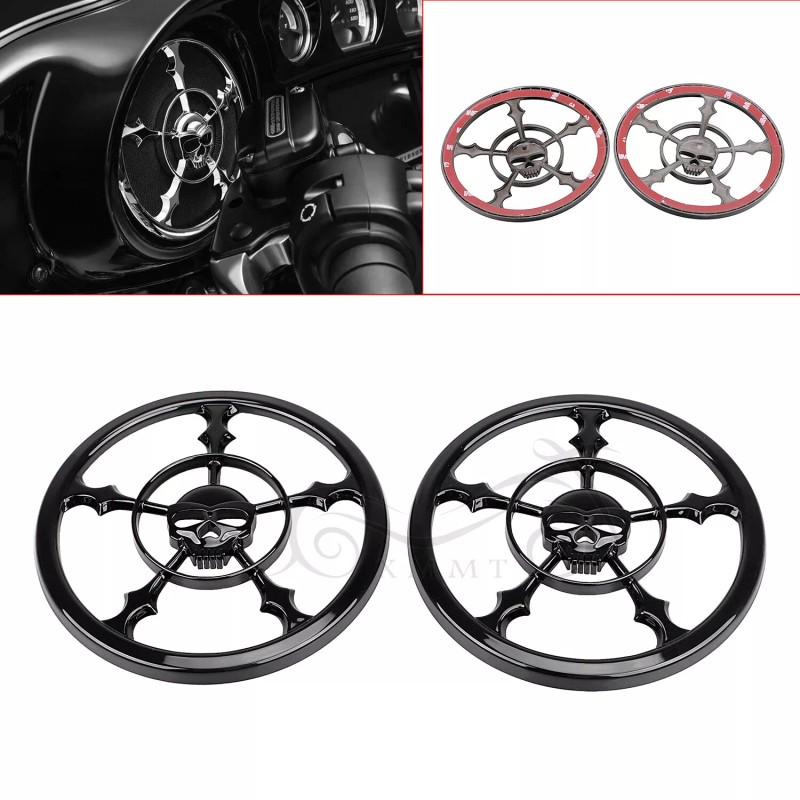 1 Sets (Left & Right) Gloss Black Skull Speaker Cover