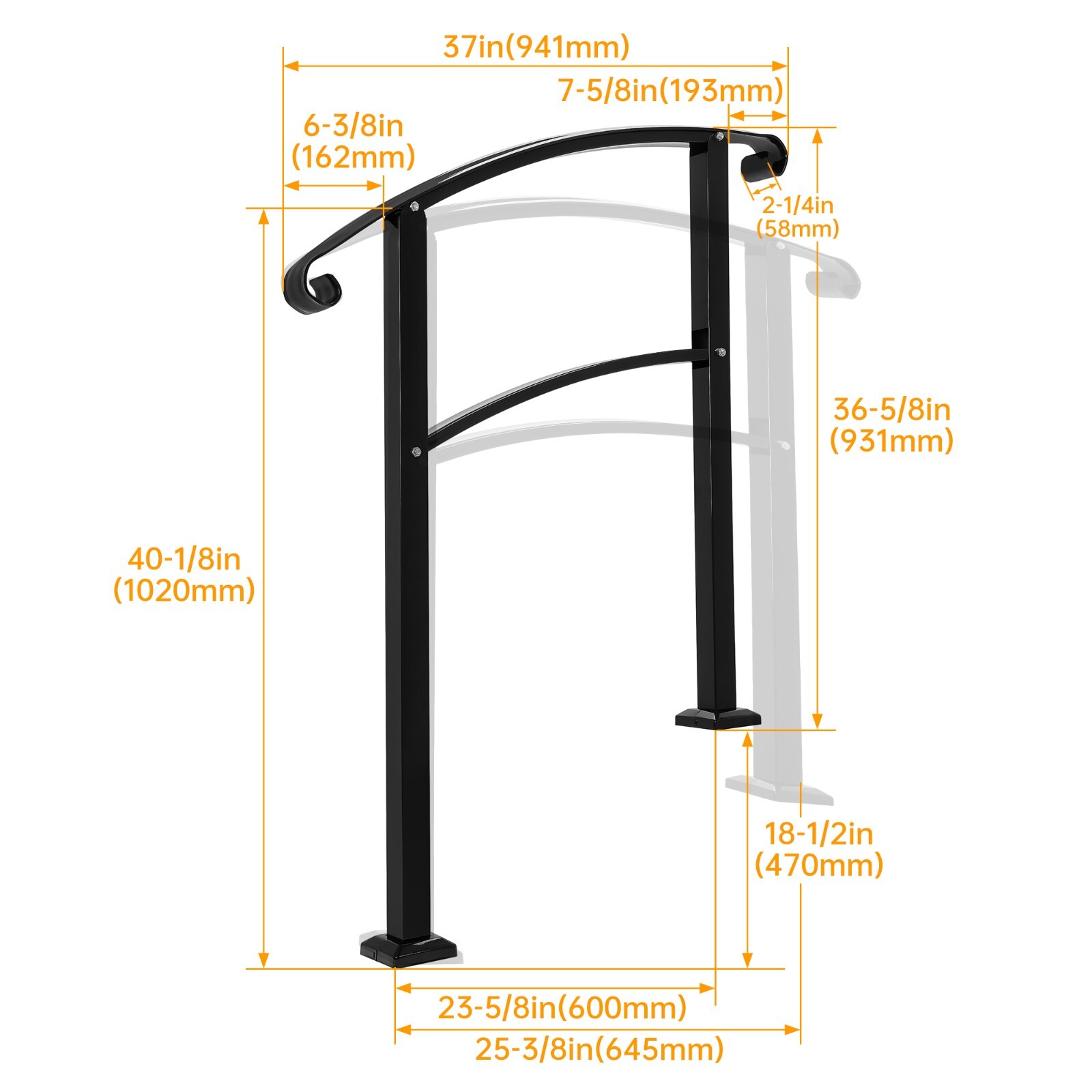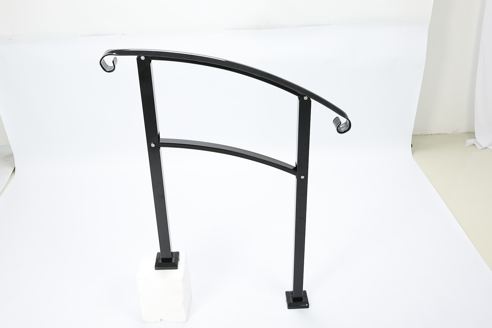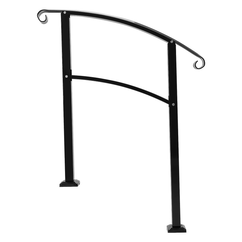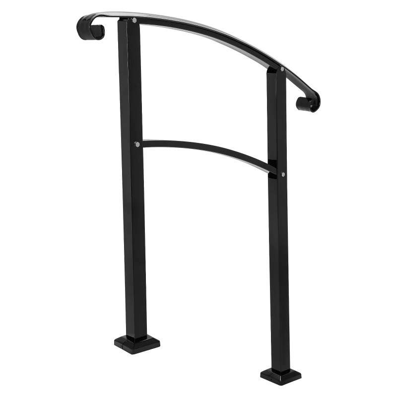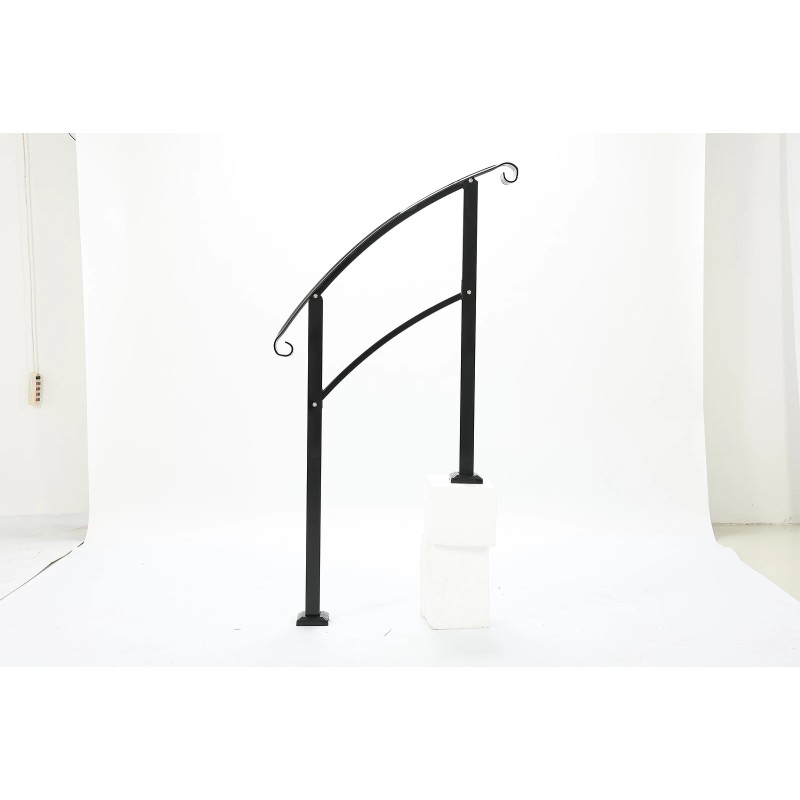 Black Steel Outdoor Step Hand Rail Handrail For 2 or 3 Step w/Hardware