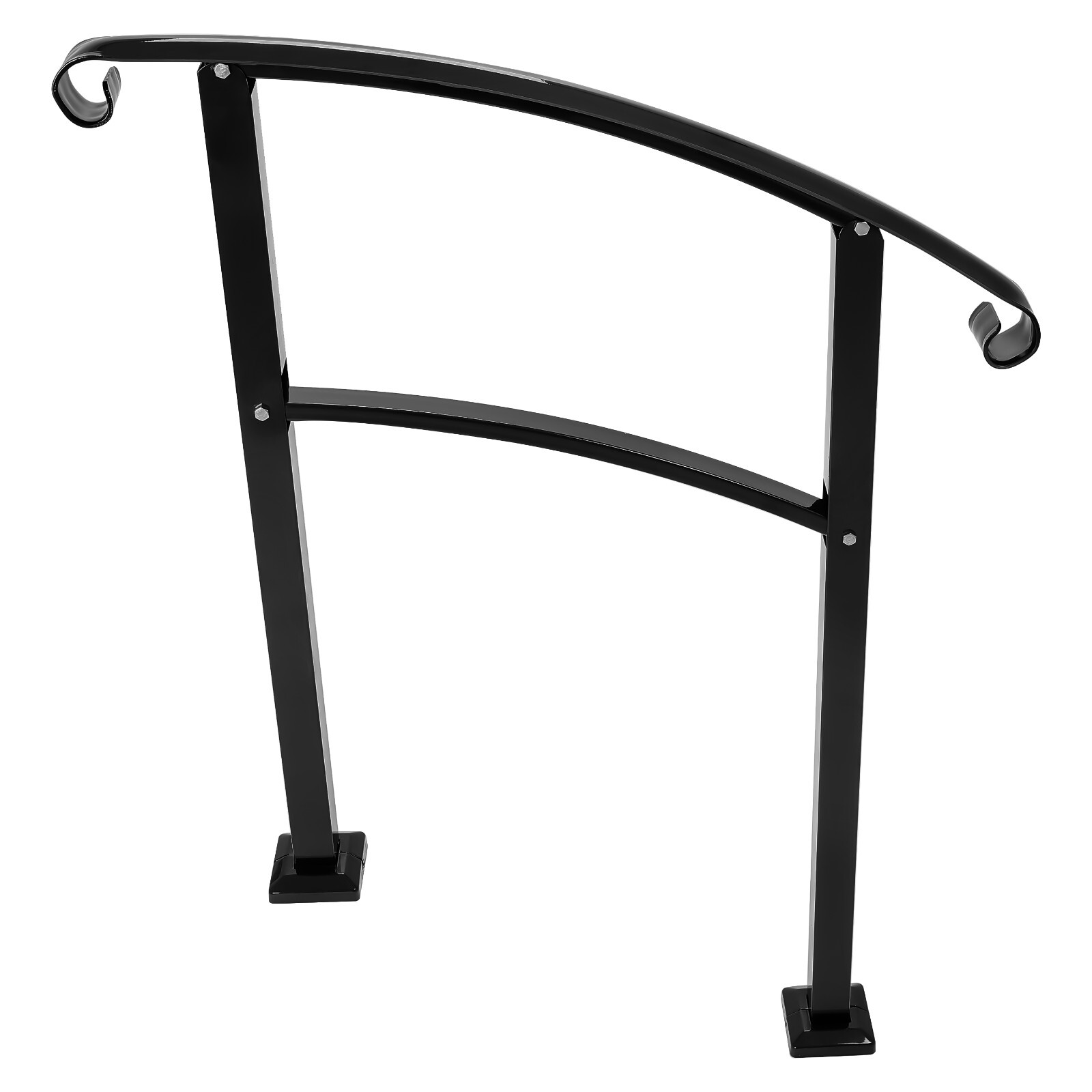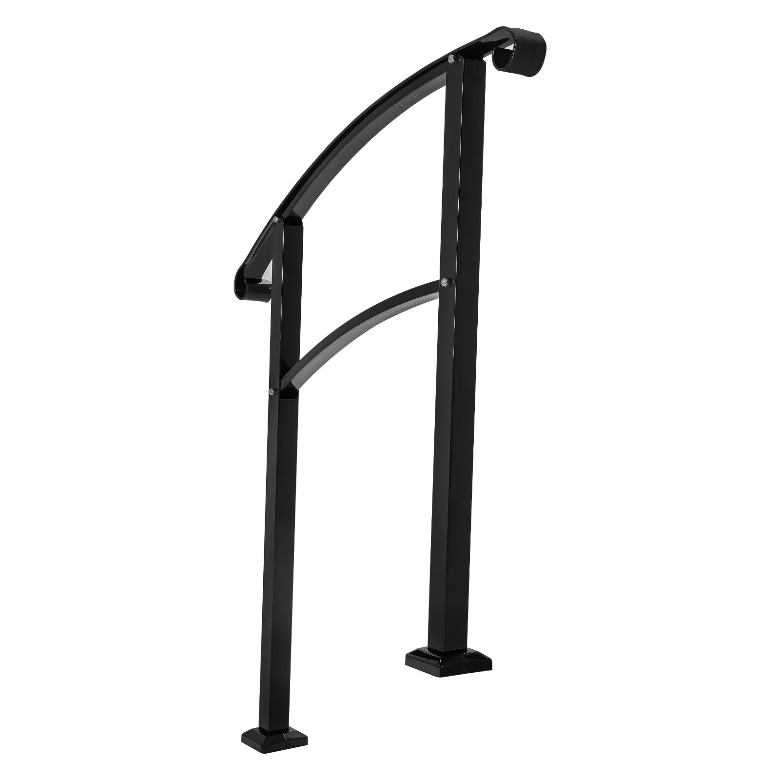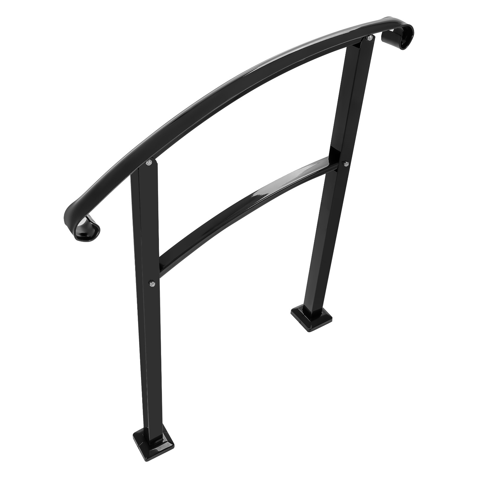 Unbranded Black Steel Outdoor Step Hand Rail Handrail For 2 or 3 Step w/Hardware