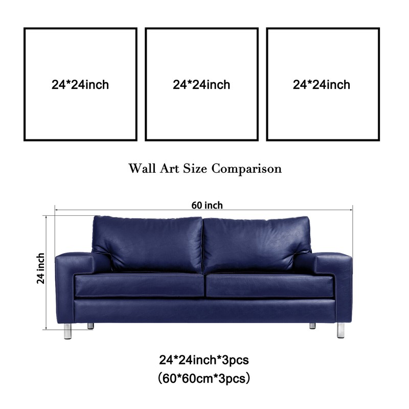 Status: Stretched with wooden inner frames, ready to hang. Each Panel has a hook already mounted on the wooden bar for easy hanging.