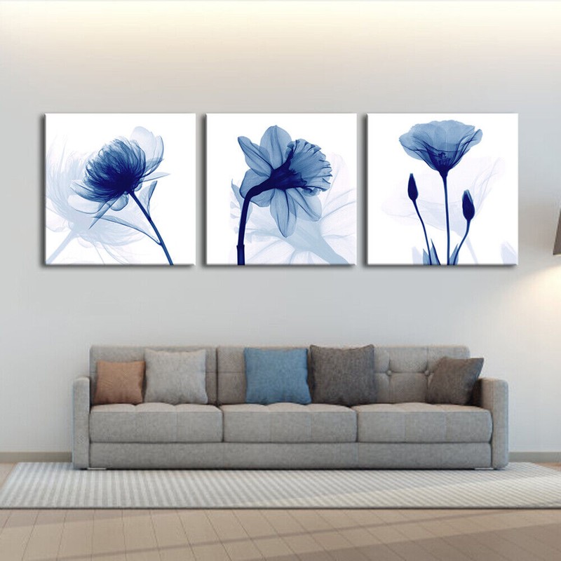 Unbranded Blue Abstract Flowers 3 Panels Canvas Prints Wall Art Modern Pictures Artwork