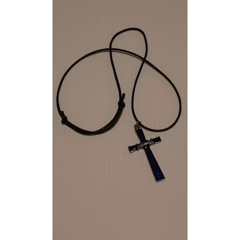 Unbranded BLUE CROSS Pewter Pendant Charm / 26" Adjustable Necklace U.S.A.