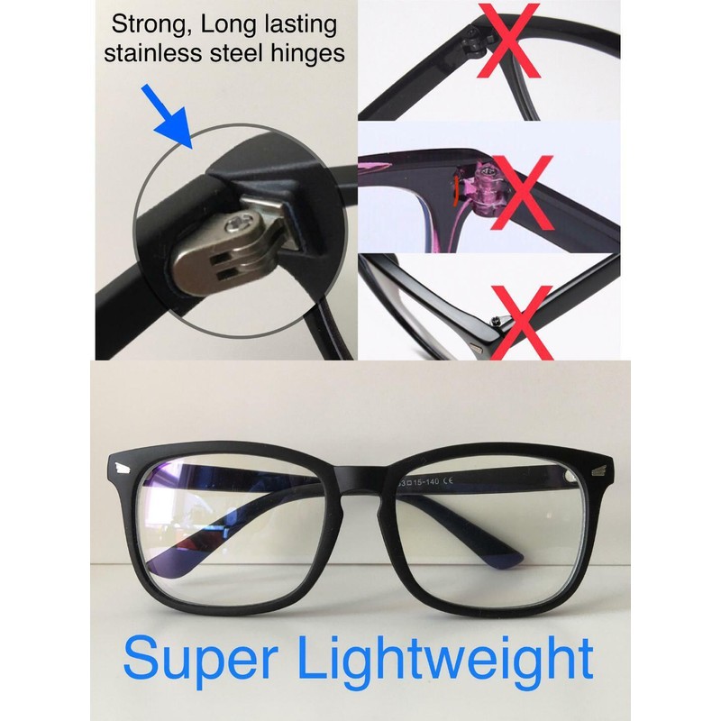 High Quality Blue Light Blocking Glasses for Computer, Gaming, Smart Phone and other Digital Devices Users Product Features: - Ultra light weight material provides all day comfort - Trendy style fits all occasions - Durable stainless steel Hinges - High quality lenses with optimum blue light blocking and UV protection ability (Non Rx) - Relieve Digital Eye Strain to Help You Work Better - Prevent Tiredness while working with digital devices - Frames are Rx-able Frame Color: Matt Black Frame Size: 53-15-140 mm (eye-bridge-temple) Package included: 1 Pair Glasses and 1 Protective hard case, and Microfiber cleaning cloth Top Quality Product, buy with confidence Fast shipping with Tracking/Delivery confirmation |