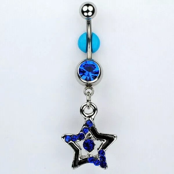 Unbranded BLUE STAR Dangle Belly Ring Navel Ring Belly Button Jewelry (C16)