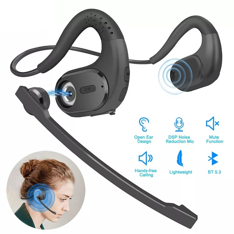 5. [Professional IPX5 Waterproof for Sports] The open headset wireless bluetooth with microphone has an IPX5 waterproof rating, perfect for people who like sports, running, biking, hiking, skiing, snowboarding, exercising! Bluetooth headset with noise canceling microphone is the best partner for office, conference, truckers, online teaching, call center, home work.
