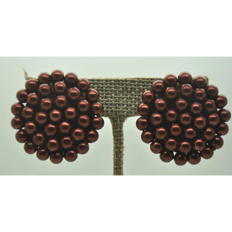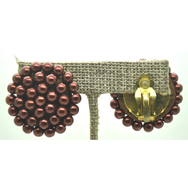 Unbranded Boho dome round shape brown Faux Pearl Bead Button Clip On handmade Earrings #5