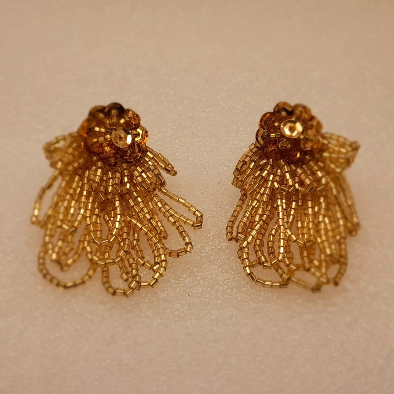 Unbranded Boho Handmade gold seed beaded sequins clip on party Dangle fashion earrings