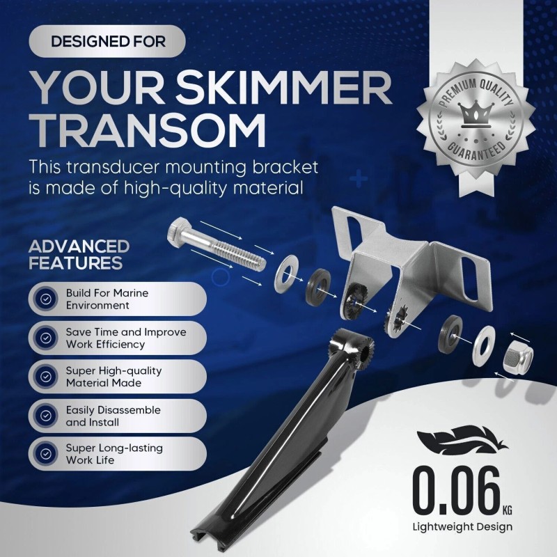 * Enjoy Fishing Life Better: Frustrated because the picture on your electronics wasn’t the same as advertised? 000-10262-001 Transducer Mounting Bracket is a nice addition for your boat that helps your skimmer transom mount transducer to find fish easier to find and get the right scan image. Efficiently improve your transducer running performance without letting go of any fish!