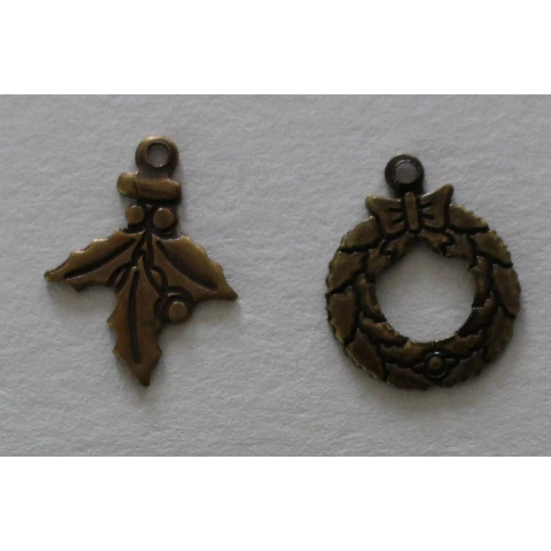 Unbranded Brass charms - Christmas Wreath & Holly - 1 of each design