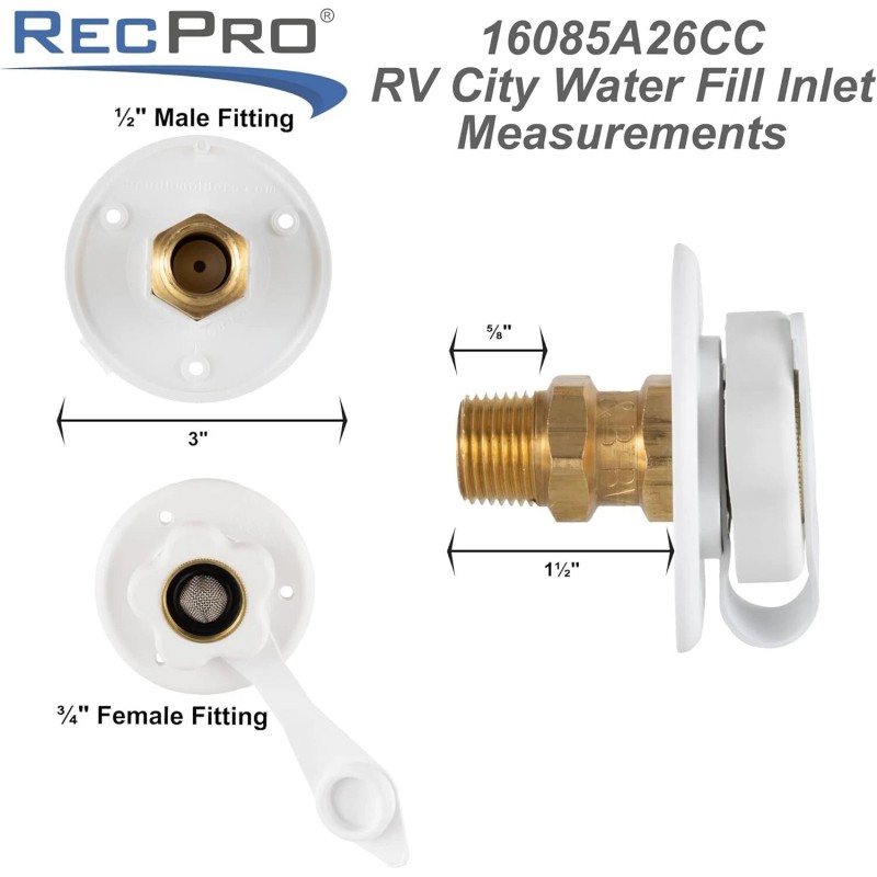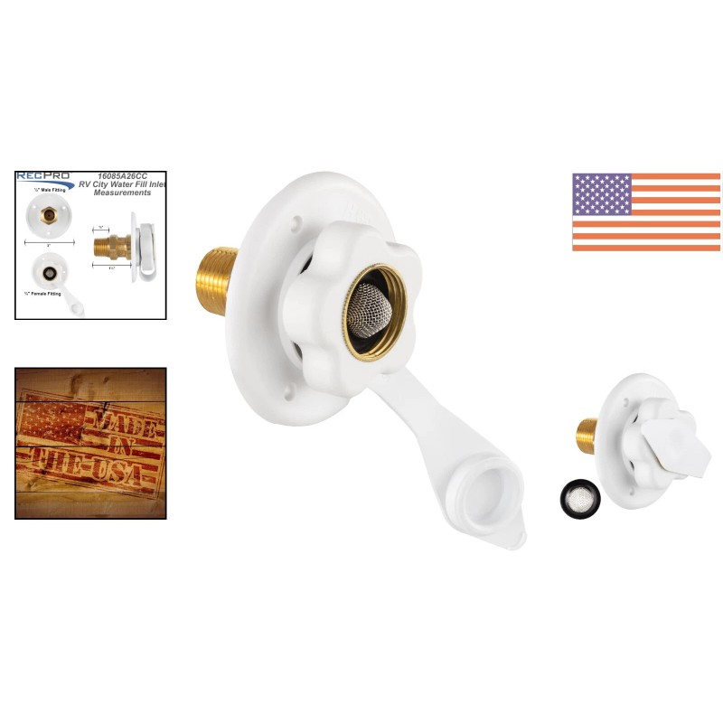Brass RV Water Fill Inlet with Check Valve - Long Lasting & Made in USA
