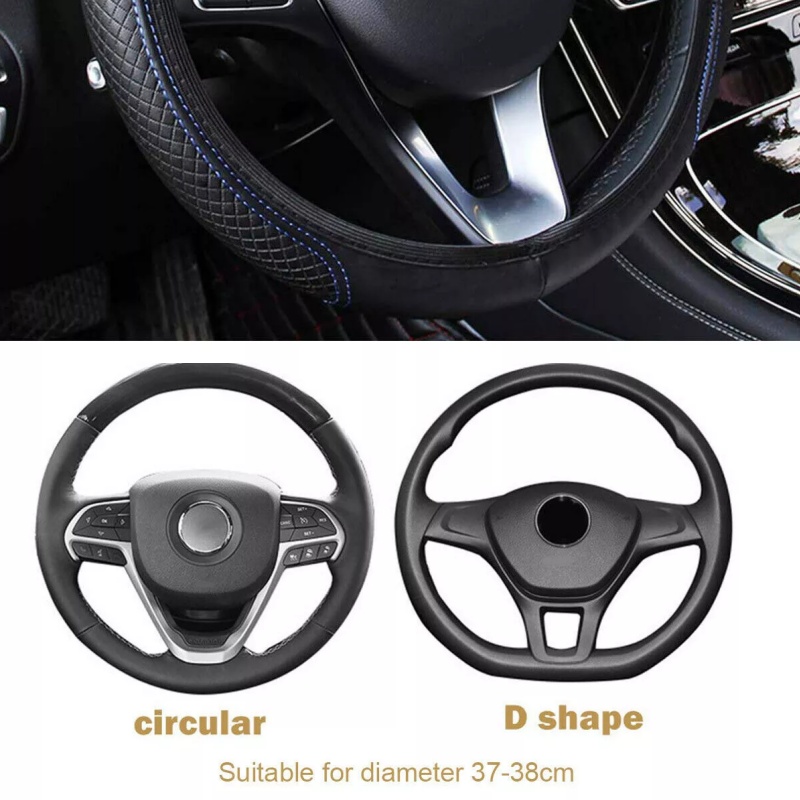 15"/38cm Car Steering Wheel Cover Leather Anti-slip Black Accessories Universal