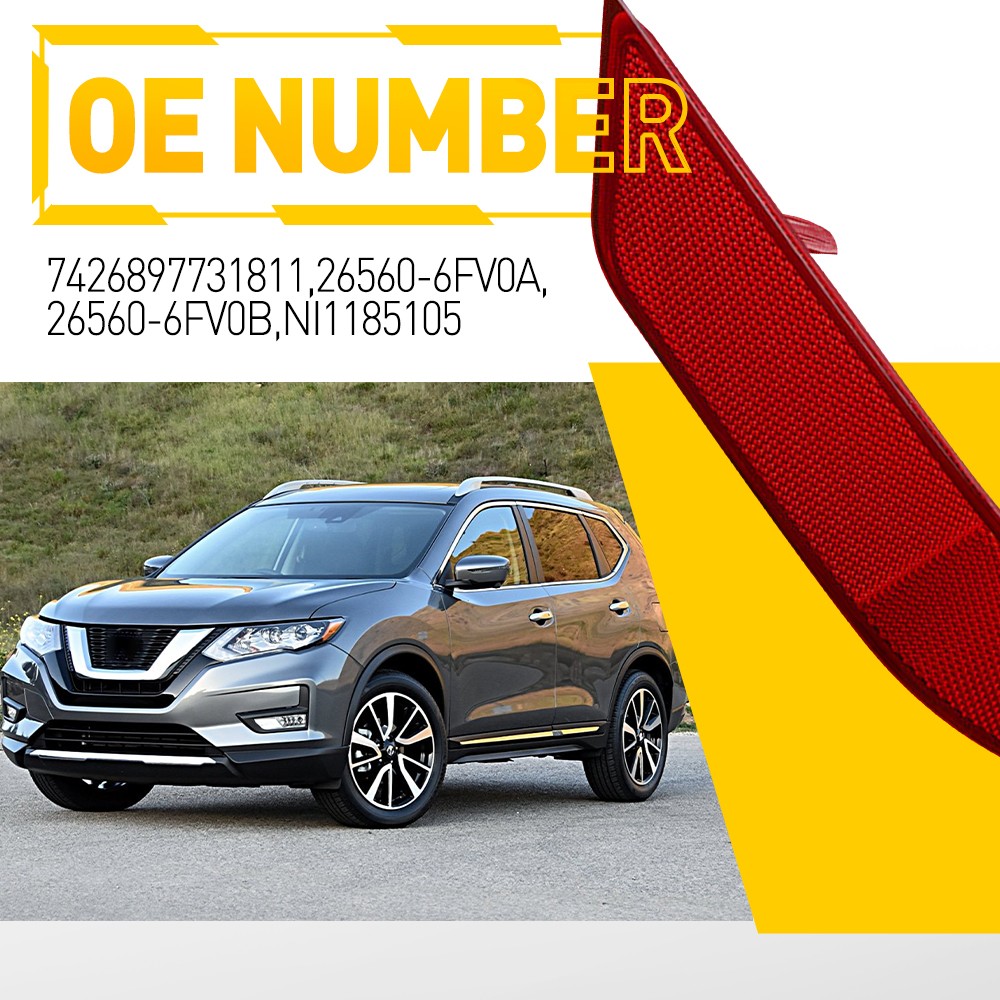 Specifications: OE Number: 7426897731811,26560-6FV0A,26560-6FV0B,NI1185105 Placement on vehicle: Rear Right Color: Red Material: ABS