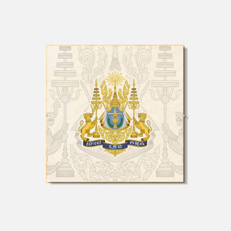 Unbranded Cambodia Coat Of Arms 4'' X 4'' Square Wooden Coaster