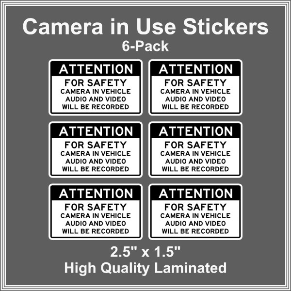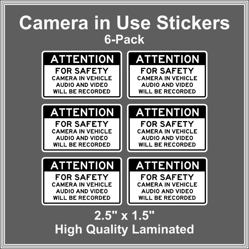 Unbranded Camera in Car Recording Video 6-Pack Decals Black & White 2.5" x 1.5" for Uber