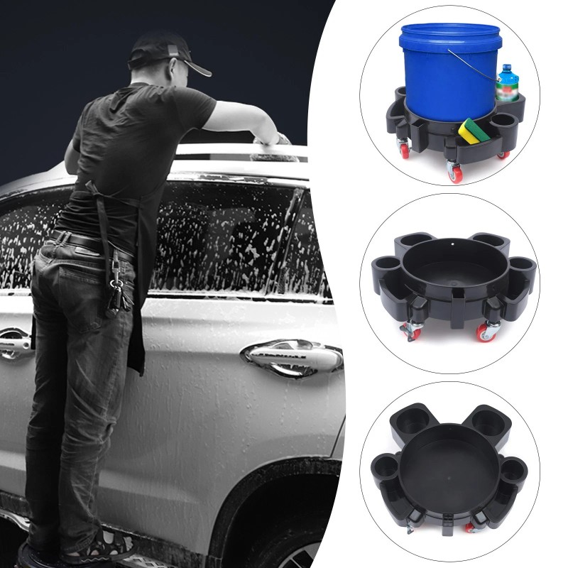 Unbranded Car Auto Detailing Washing Bucket Dolly Rolling Trolley Cart Holder 5 Wheels
