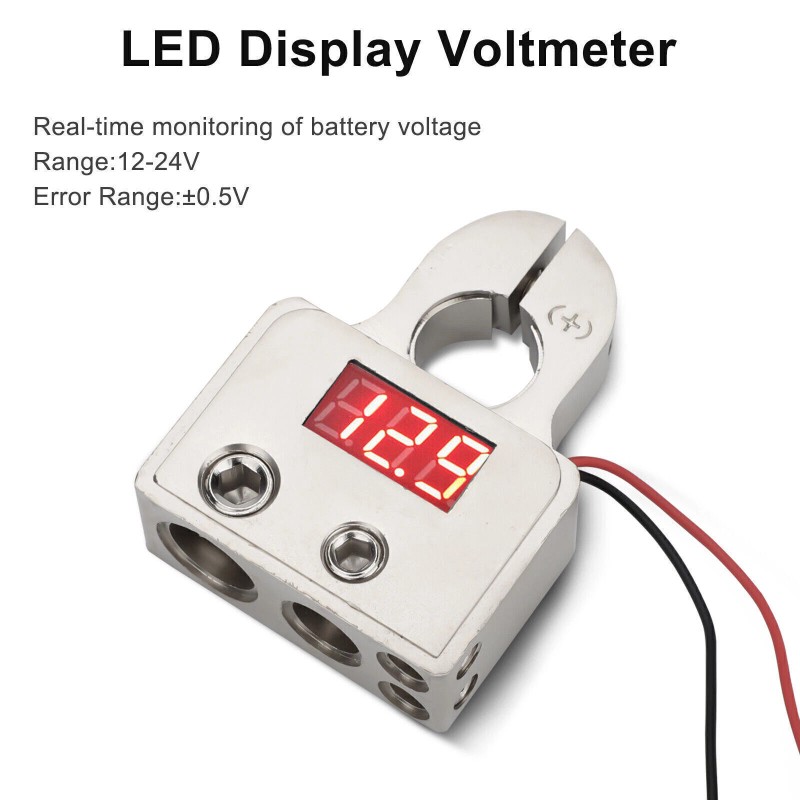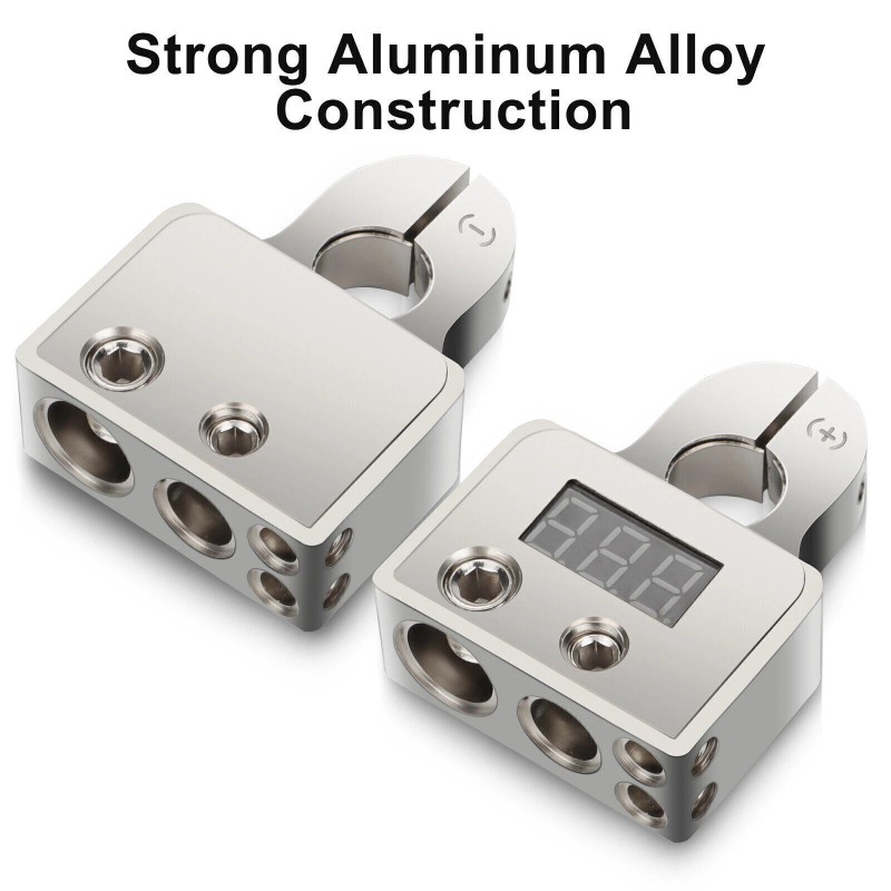 Unbranded Car Battery Terminal Connectors Kit w/ Digital Voltmeter Display 0/4/8 AWG Gauge