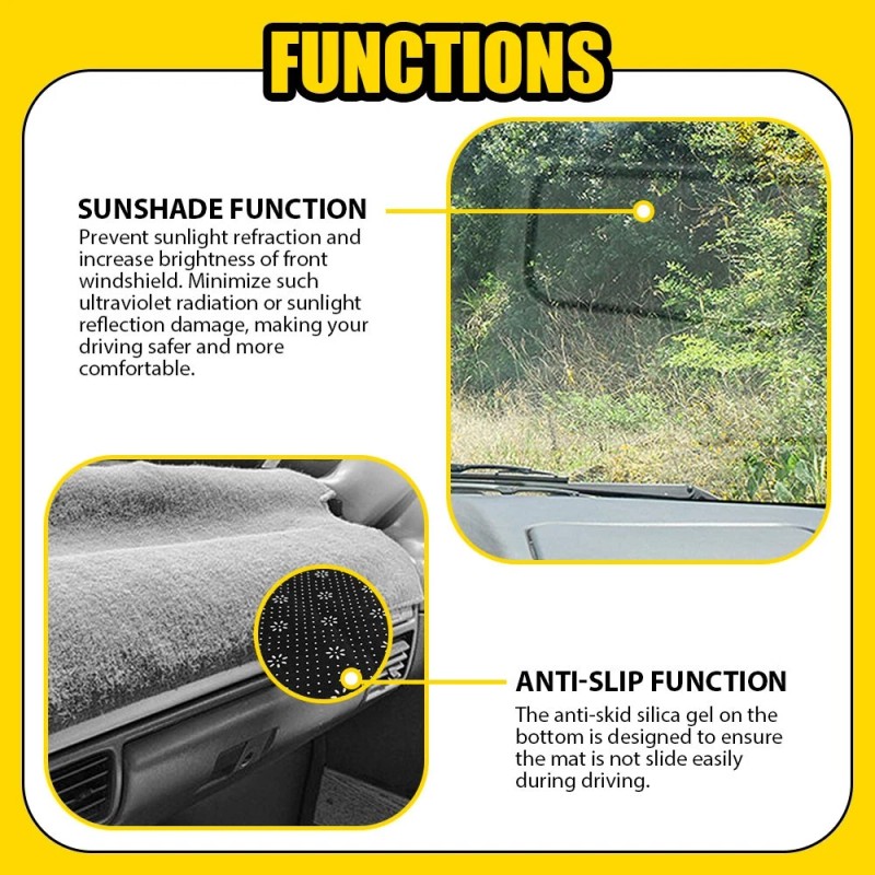 *Simple installation: 1. Clean the dashboard. 2. Place the mat on top of it. 3. Done.