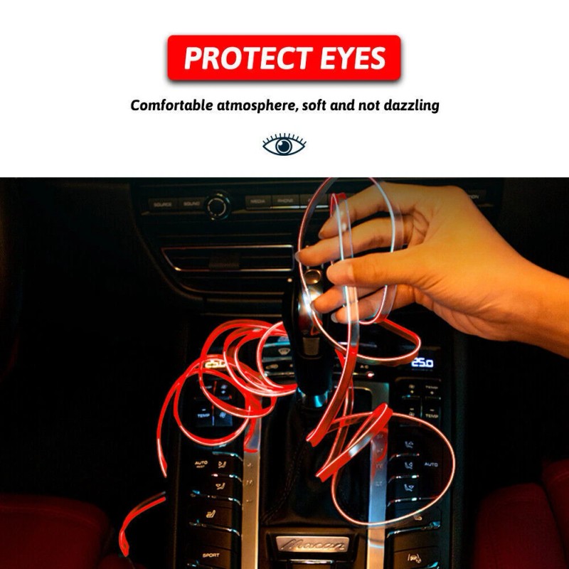 Unbranded Car Dashboard Red Light 2M Interior Atmosphere 12V Cold Led Wire Strip For GMC