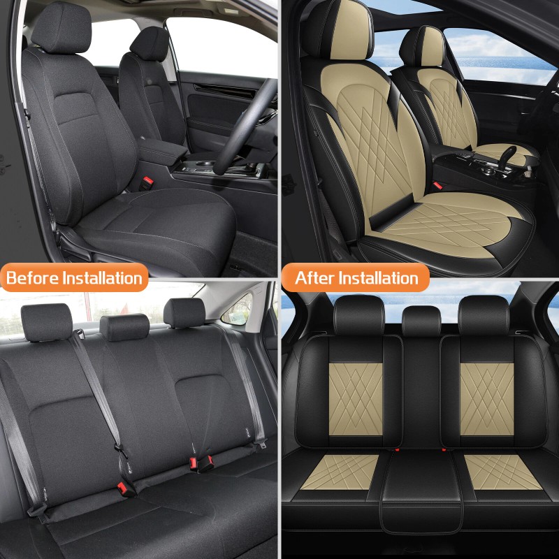 ▼ Material: Premium faux leather is durable, breathable, comfortable and has good waterproof. The interior of the seat cover is filled with sponge, the appropriate thickness allows you to sit for a long time without getting tired.