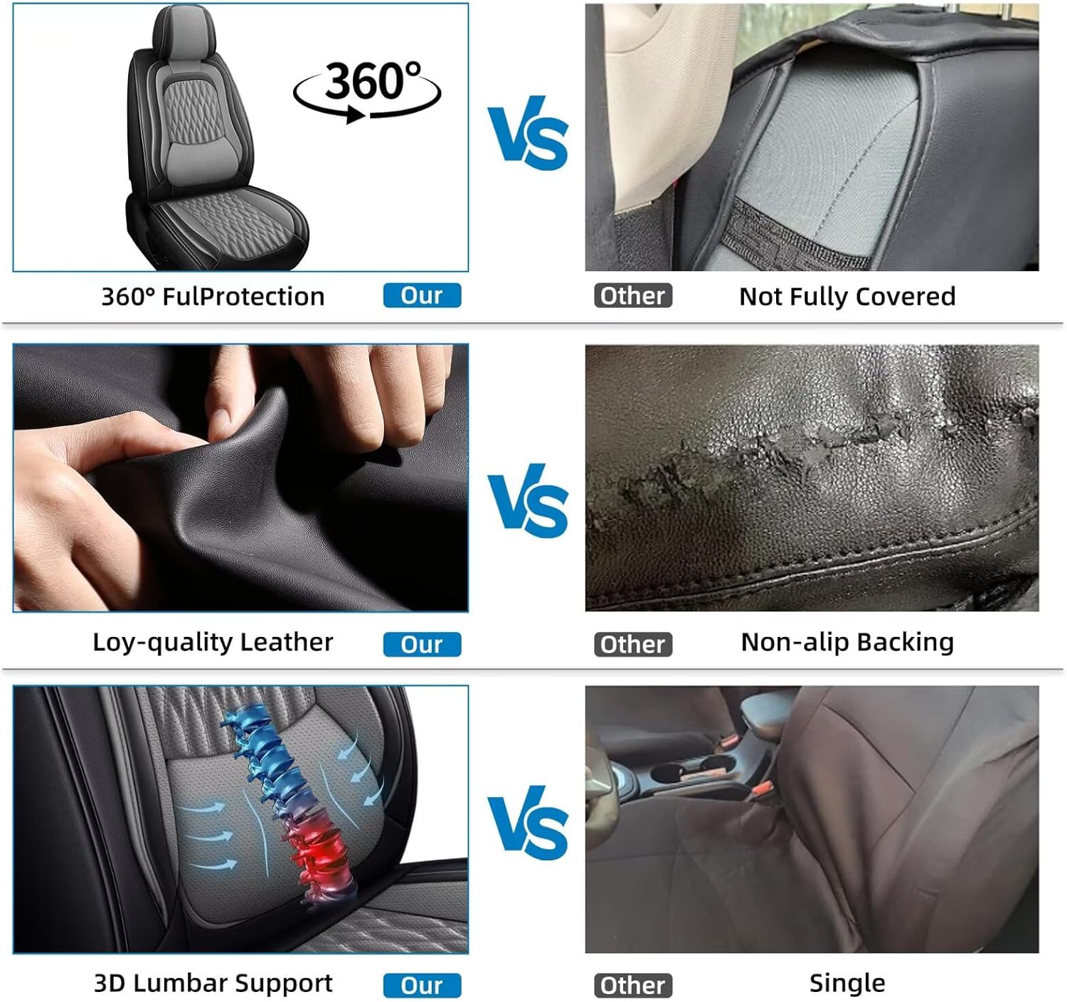 ❤ Material: Premium faux leather is durable, breathable, comfortable and has good waterproof. The interior of the seat cover is filled with sponge, the appropriate thickness allows you to sit for a long time without getting tired.
