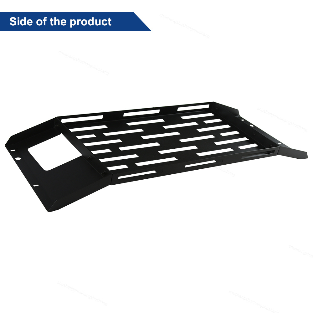 No drilling or cutting required. Just bolt the 2 brackets into the existing holes of your side rails, then connect the 2 side brackets with the rectangle rack. This trunk shelf can be installed easily.