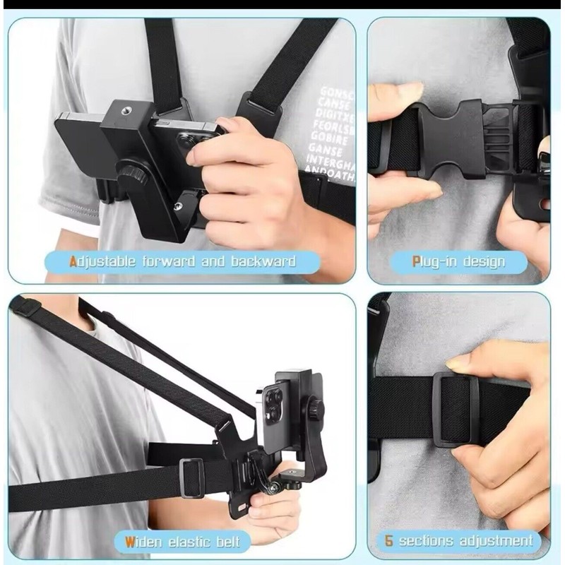 **The mount is compatible with all cell phone brands and features a comfortable chest strap for easy carrying. Its sleek black design is stylish and functional, making it a great addition to your cell phone accessories. Perfect for those who love to take selfies and want a versatile and convenient way to do it.**