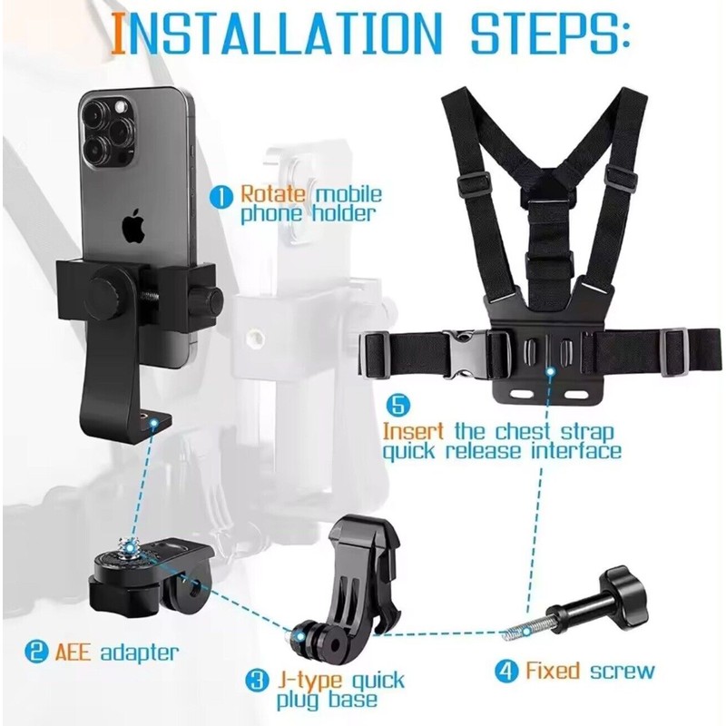 **The mount is compatible with all cell phone brands and features a comfortable chest strap for easy carrying. Its sleek black design is stylish and functional, making it a great addition to your cell phone accessories. Perfect for those who love to take selfies and want a versatile and convenient way to do it.**