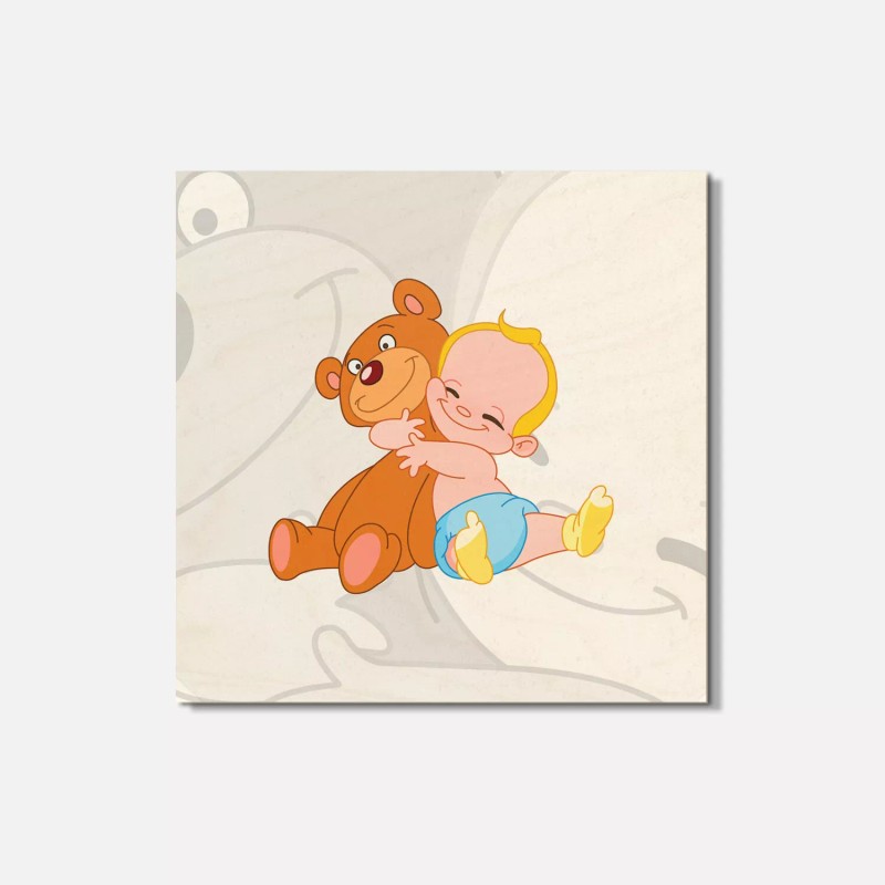Unbranded Cheerful Baby Hugging His Teddy Bear Animal 4'' X 4'' Square Wooden Coaster