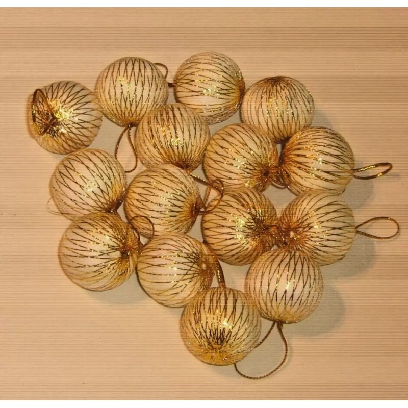 Unbranded Christmas Ornaments White Foam Mini Balls with Gold Thread Wrapped 18pcs 1"