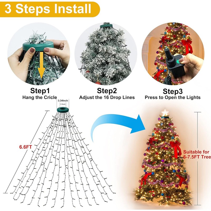 - CHRISTMAS TREE LIGHTS WITH REMOTE : Light elves Christmas Tree Lights with remote is design for tree.You just need to place the halo ring at the top of Christmas tree and align the 16 strands - A beautiful Christmas tree is born.