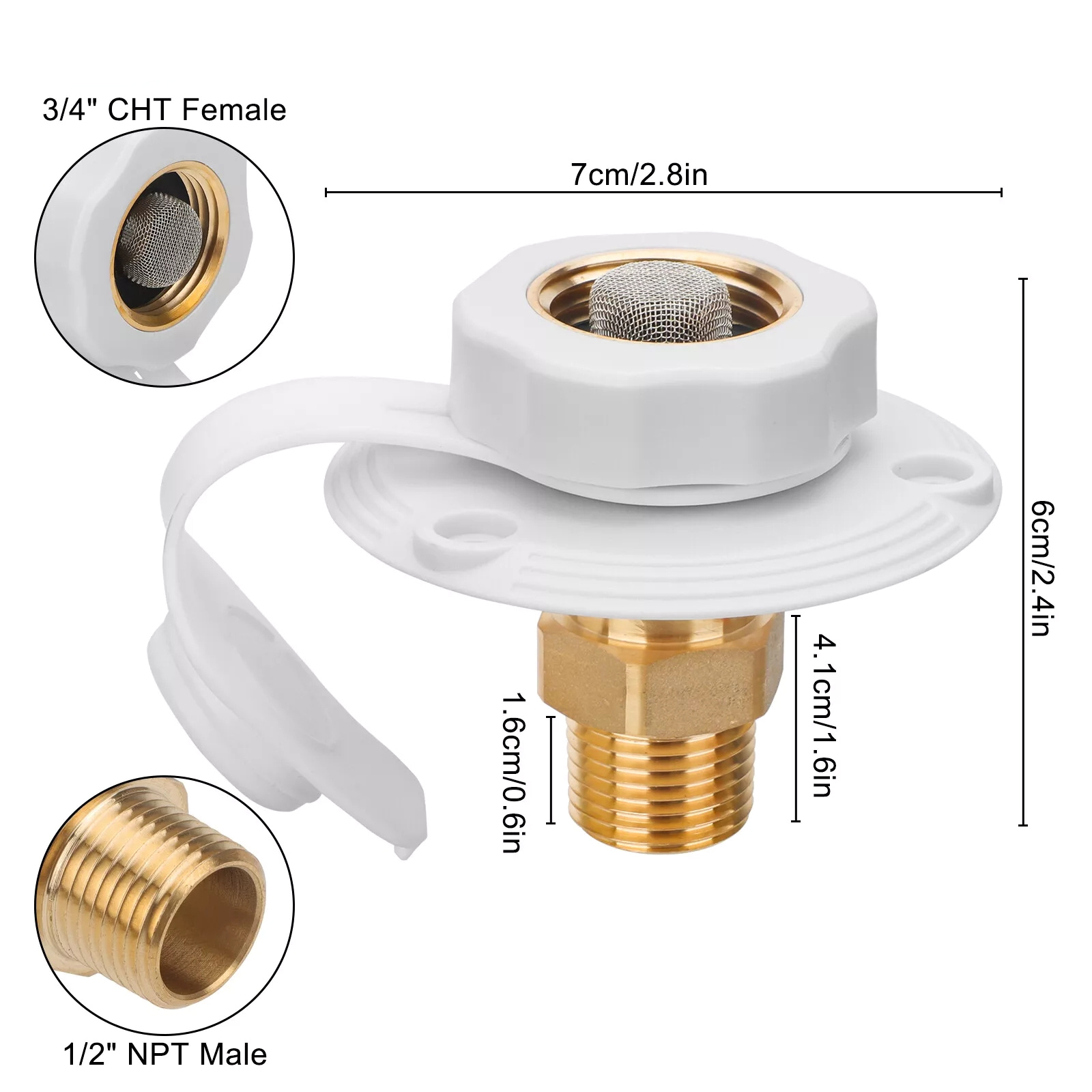 Reliable Material: Made with a brass threaded tube and premium plastic cap, RV city water inlet is sturdy, reliable, and suitable for outdoor use, offering long-term durability.