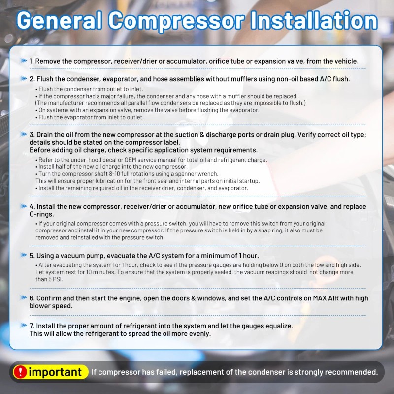 1.Remove compressor, receiver drier or accumulator, orifice tube or expansion valve.
