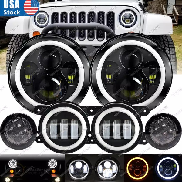 Unbranded Combo For 07-18 Jeep Wrangler JK JKU Turn Fog Lights & 7'' LED Headlights Kits