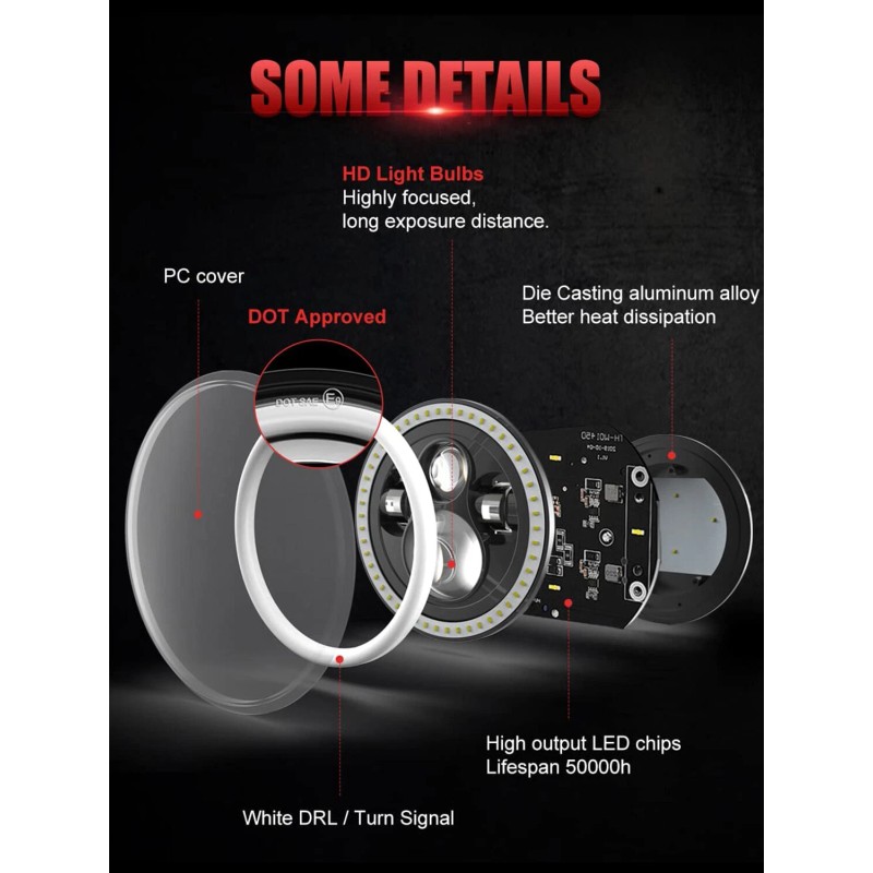 DOT, SAE legal light,legal on the road.With high grade LED chip, much brighter and durable than Halogen or HID Headlight.