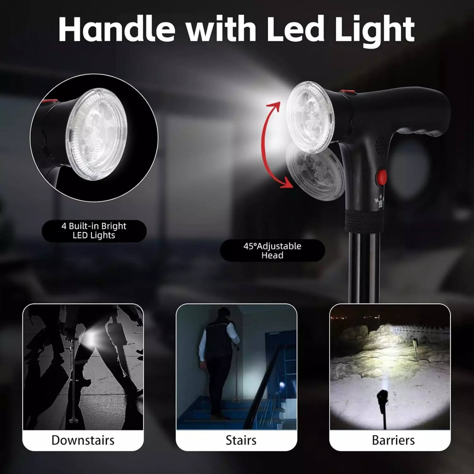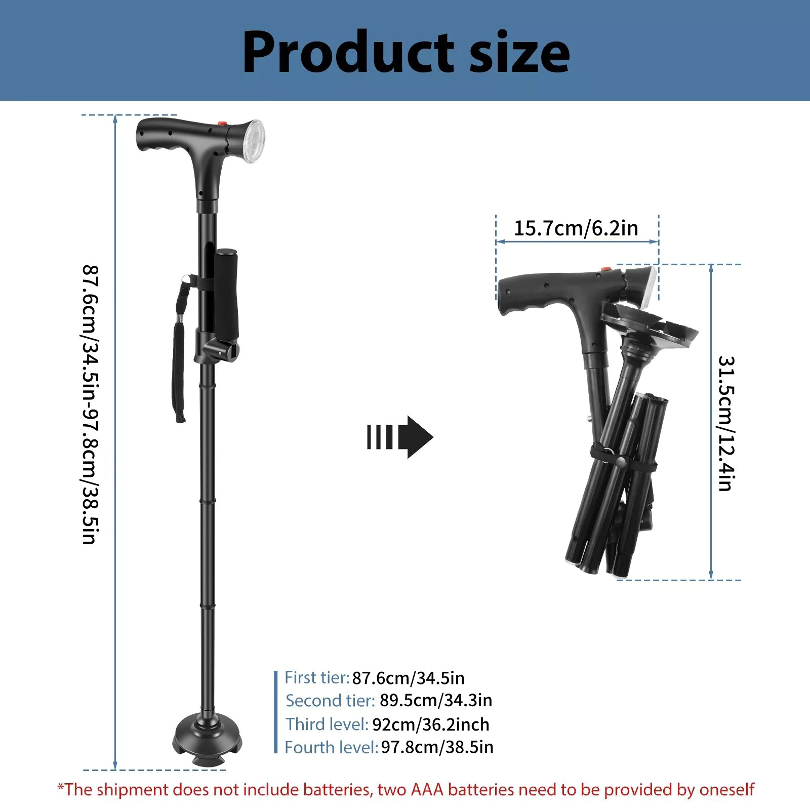 4. With LED Lights: Adjustable Built-In LED Lights Illuminate The Road At Night. Bright Lights Will Guide You Safely In The Dark. The Direction Of Light Can Be Adjusted, And Different Lighting Angles Can Be Adjusted. We Offer You A Lightweight Premium Crutch That You Can Move Around With Confidence! Please Note That This Cane Does Not Include Batteries And Must Be Purchased On Your Own