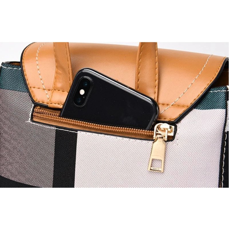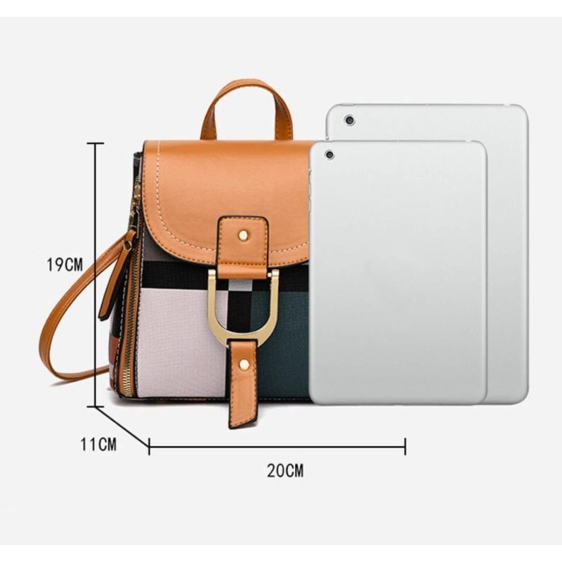 Unbranded Convertible Strap CREAM Flap Cover Plaid Leather Handbags Shoulder Bag Backpack