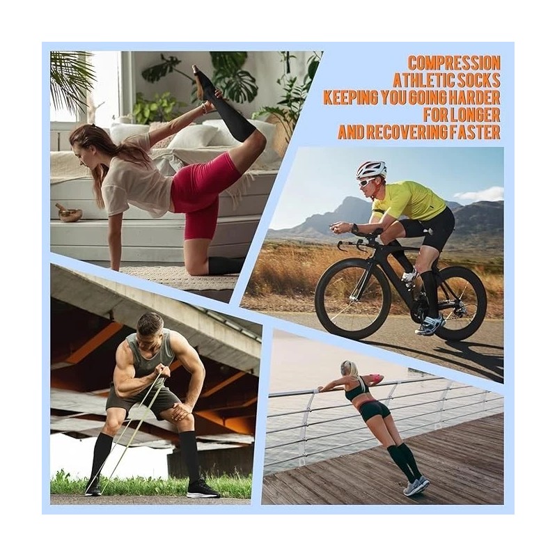 - Suitable for all occasions - The sleeves have a preventive effect are suitable for runners, athletes, fitness workouts, hiking, tennis, cycling, office workers, airplane travelers, or anyone on their feet all day. Whether high or low or high impact, these enable you to warm up safely and recover quickly. The calf sleeves & socks are also perfect for everyday use especially while pregnant, for people in retail, air travel, jobs as a nurse or who require a lot of standing on your feet.