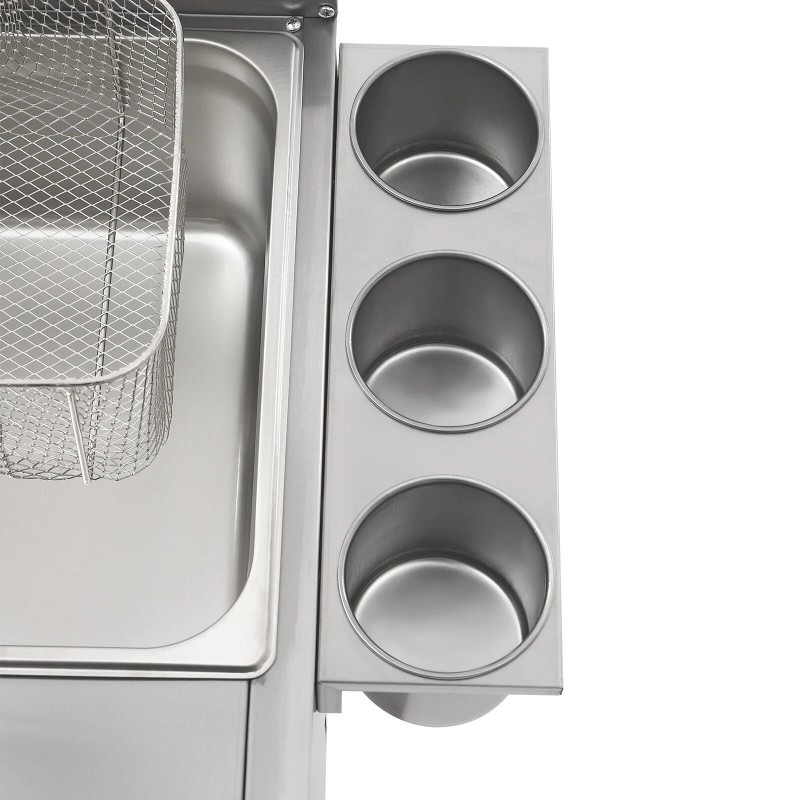Outstanding Performance: It has two large tanks (5.3QT+5.3QT), and also adopts two fire control switches (140℉-392℉) for independent or simultaneous food handling to flexibly cope with different customer flows.