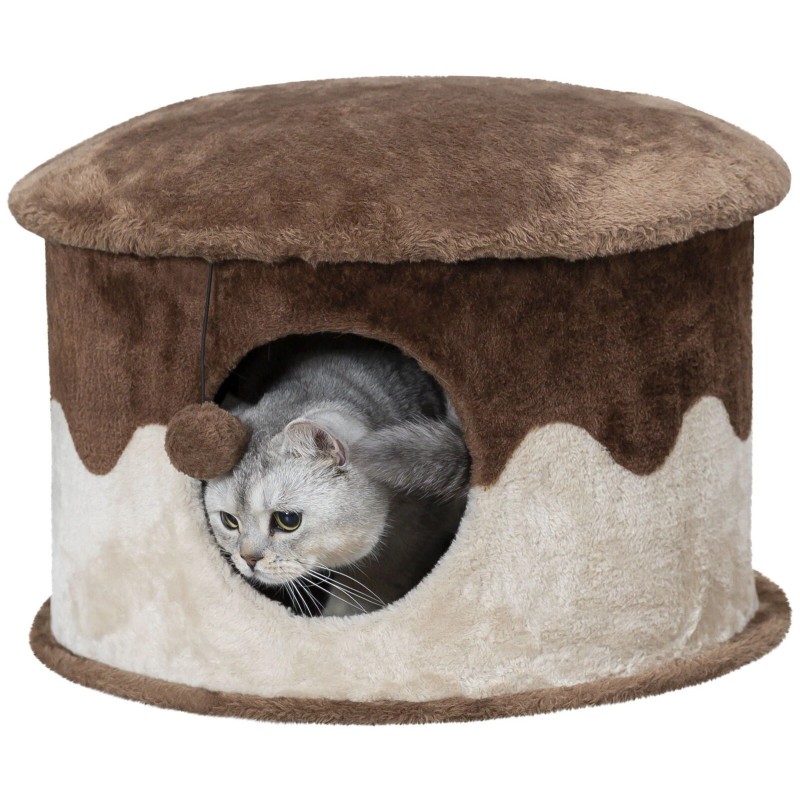 Unbranded Cozy Plush Cover Indoor Tunnel Bed Cat Condo Kennel Nest with Cat Toy on String