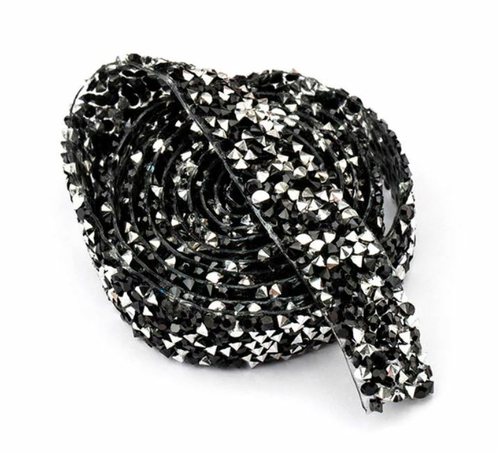 Unbranded Crystal Black Silver Rhinestone Belt Trim Thin Iron On Snagless .5" x 34"