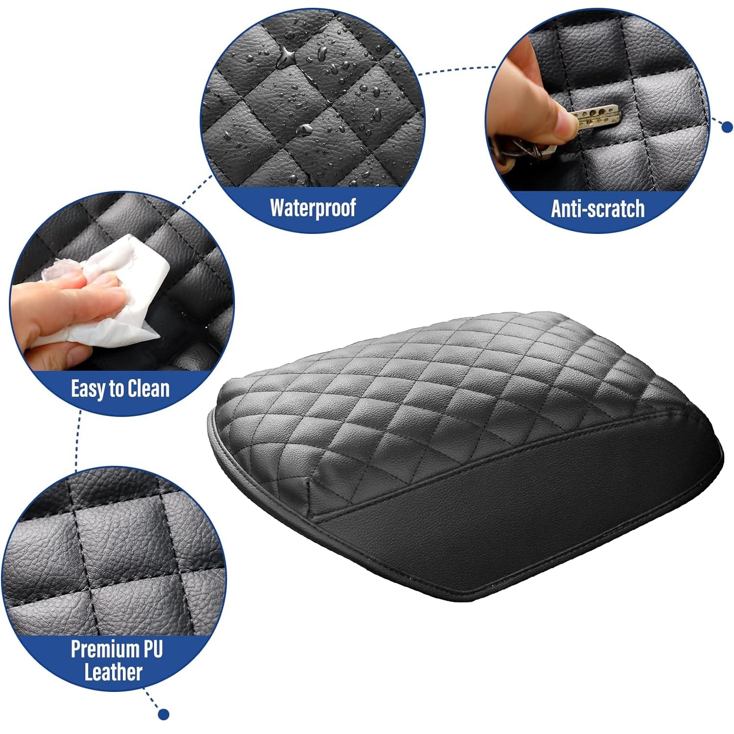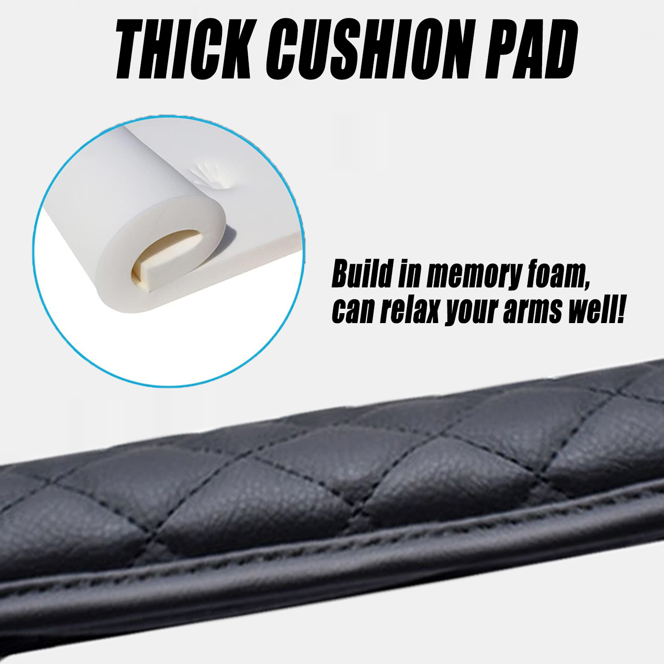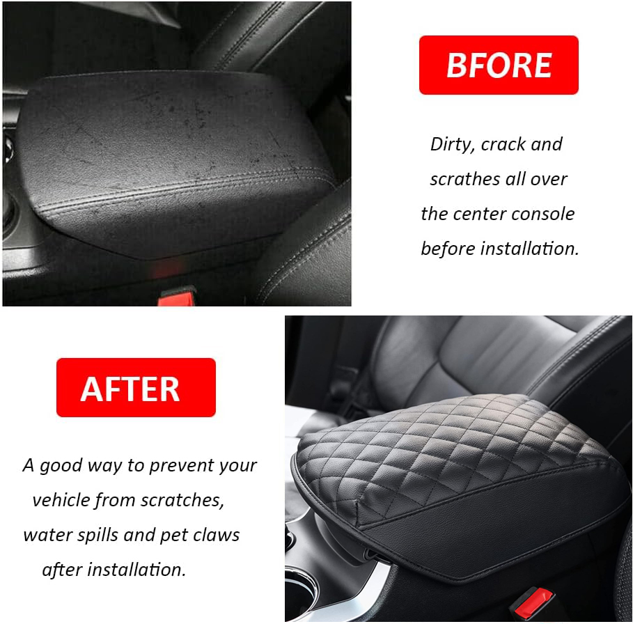 - ENHANCE ARMREST COMFY - Made of quality leather and filled with sponge, extra enhance the armrest comfy, relieves the stress of your elbow while driving, and keeps your arm from burning in the hot summer or keeping a sweaty arm from slipping around.