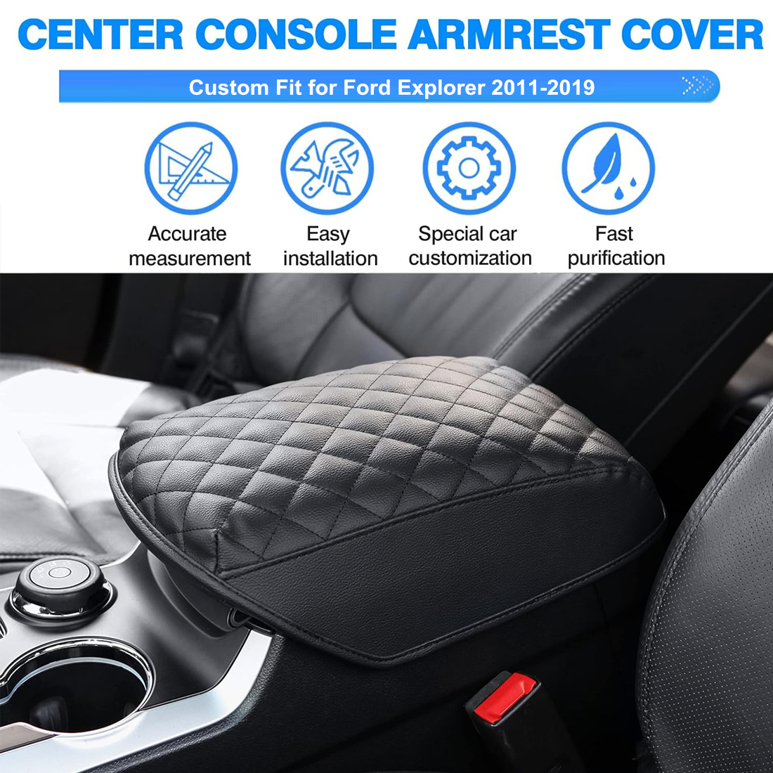 Unbranded Custom For 2011-2019 Ford Explorer Car Center Console Armrest Cushion Cover Pad