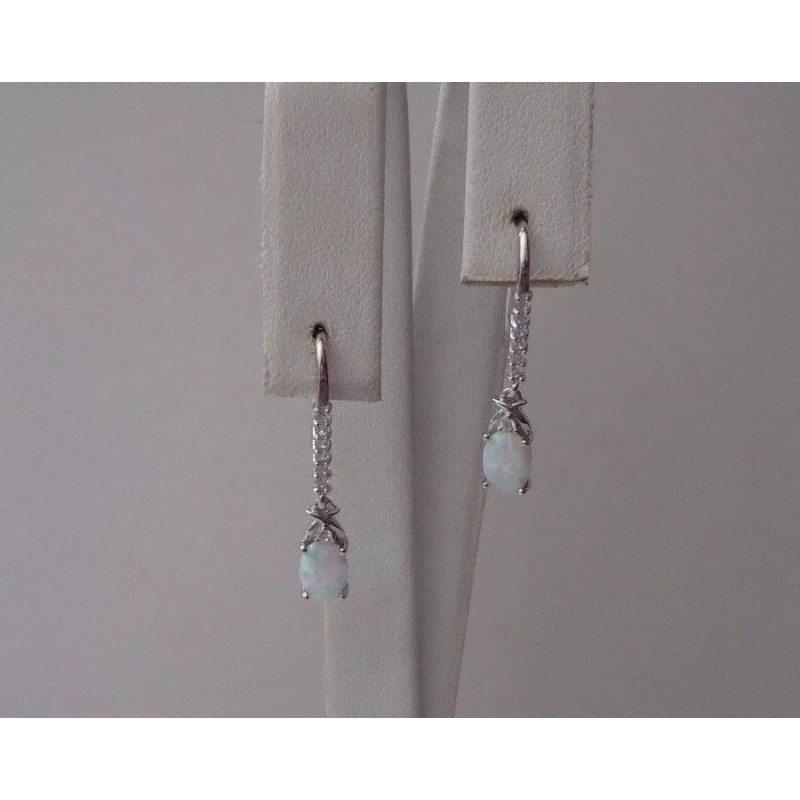 Unbranded DANGLING 925 STERLING SILVER HOOK STYLE EARRINGS W/ 1.50 CT OPAL / ACCENTS