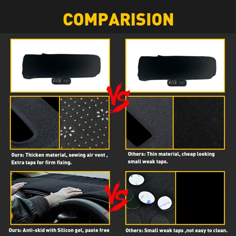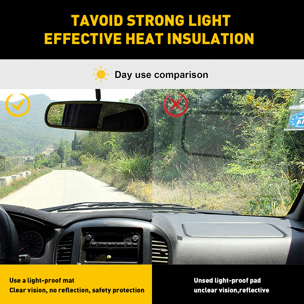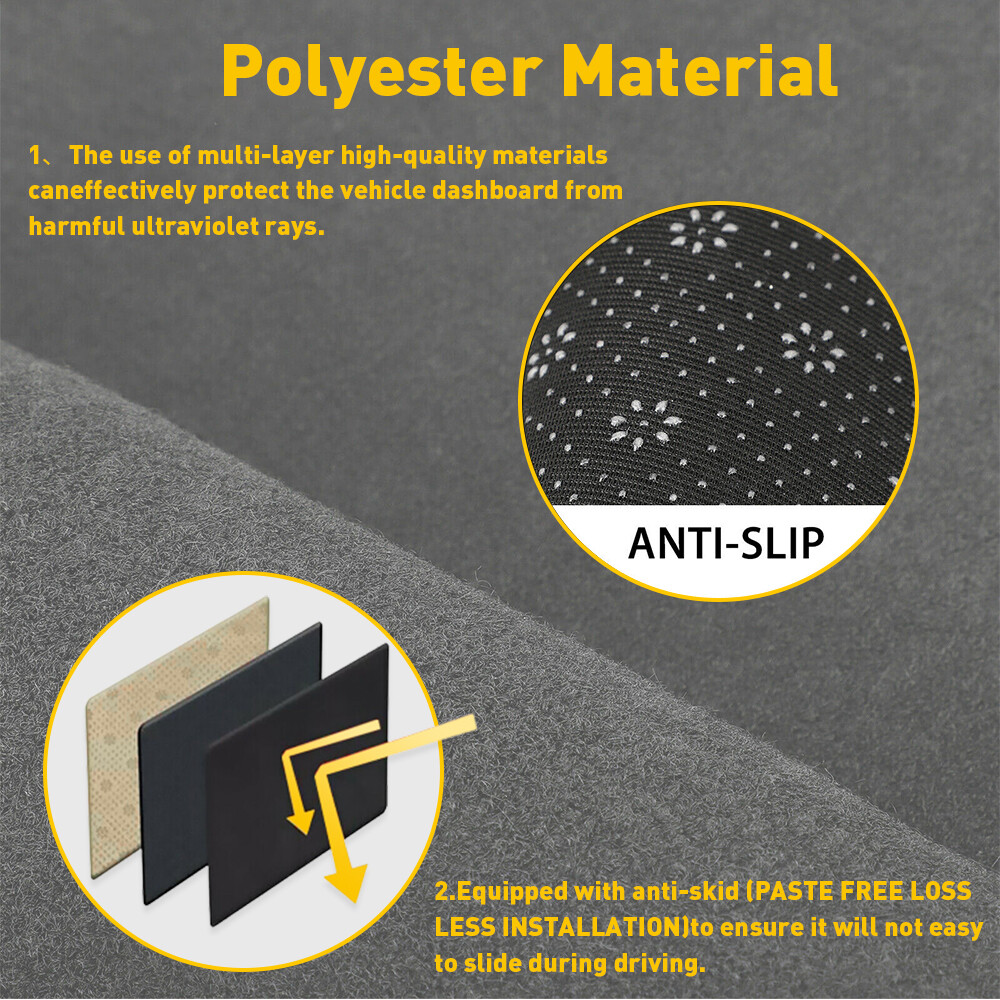 Features: *Sunshade function: Prevent sunlight refraction and increase brightness of front windshield. Minimize such ultraviolet radiation or sunlight reflection damage, making your driving safer and more comfortable. *Anti-slip function: The anti-skid silica gel on the bottom is designed to ensure the mat is not slide easily during driving. *Great protection: Protecting the Dashboard surface from scratches, cracks and warping. *Superior material: Polyester material is used on mat surface which is quite durable ,elastic and without deformation and pilling. *Perfect fit: With its well-cut shape, it will line up with your car in all the right spots and is easy to install without modificaitons. *High qulity: Durable, colorfast, non-shrinking needle-punch carpet *In Winter, warm the dashboard *In Summer, block UV rays from heating-up,cool the car, prevent high temperature *Environment-friendly materials, no bad smells, anti-slip, easy to install