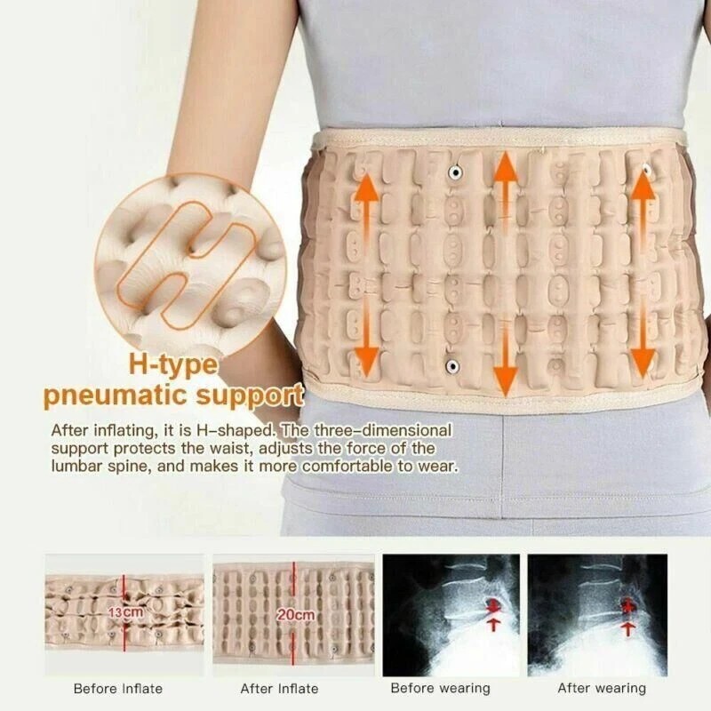The decompression back brace made with soft cotton and PU/TPU, the belt inflates with air and it is very lightweight and portable to be taken. Most ages people get long-lasting back pain relief with the physic belt, and the belt is suitable for 29-49 inch waist, easy to carry, you can relief your back pain, correct your posture, give your spine a traction and lumbar a support anytime, anywhere.