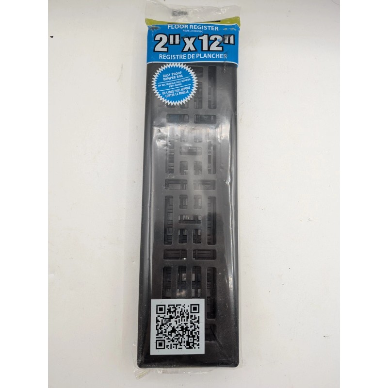 The DECOR GRATES AJH212-RB 2x12 Floor Register in black is a vent cover designed for floor registers. With a sleek black color and a specific model number of AJH212-RB, this product is tailored to seamlessly blend in with the surrounding area while providing a functional venting solution. Perfect for heating and cooling systems in homes, this floor register is a stylish and effective addition to any room.