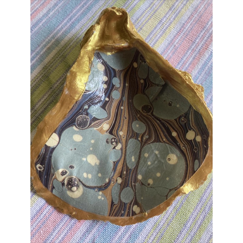 Unbranded Decorative Modern Bubble Oyster Shell Jewelry Ring Trinket Dish Blue Gold